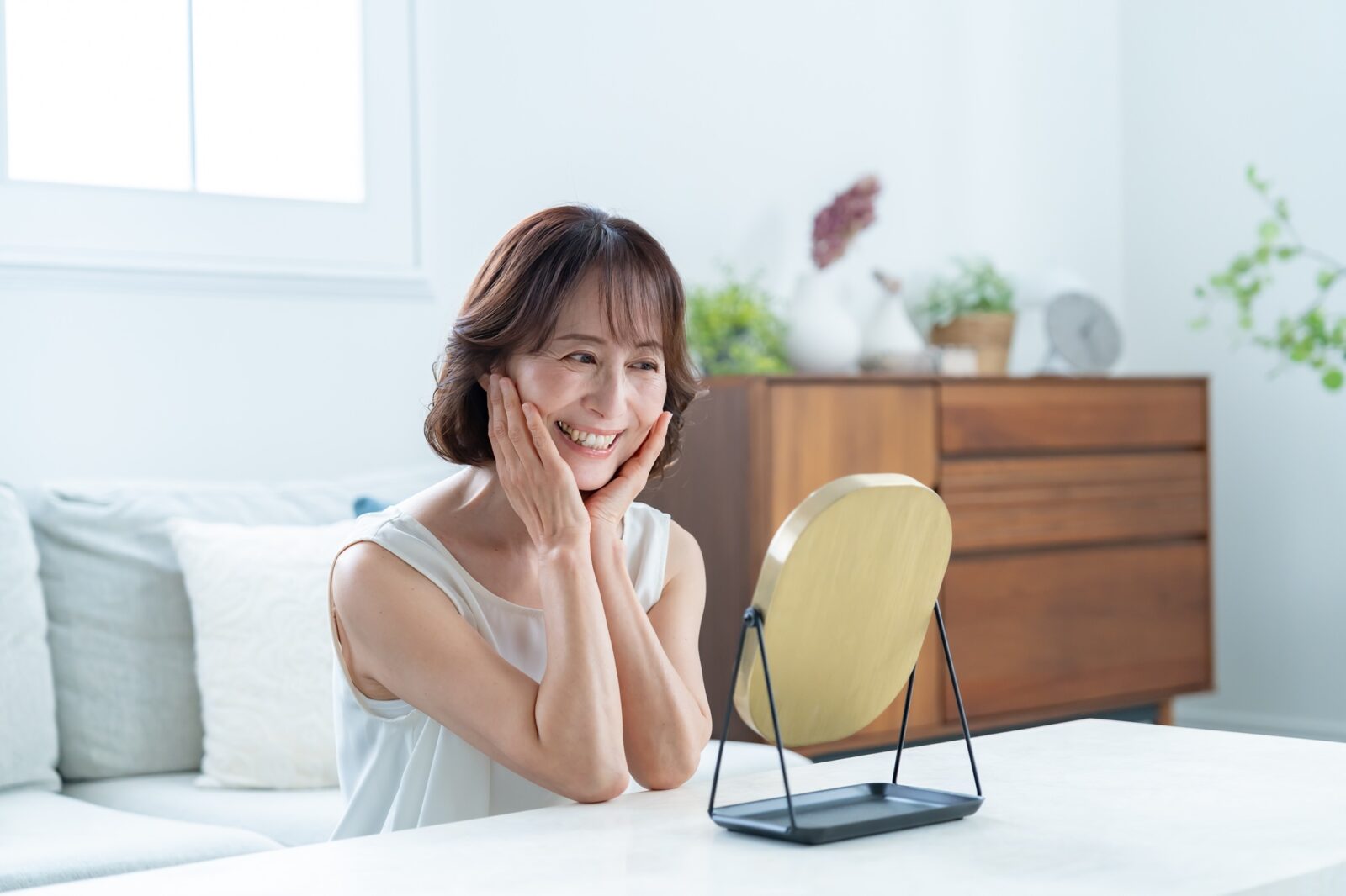 お口に合った入れ歯を使用することで、ほうれい線やしわが改善され、口元の若返り効果があります。